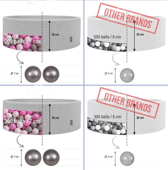 Laat uw kinderen eindeloos speelplezier beleven met onze grijze ballenbak inclusief 200 ballen met een diameter van 7 cm. De afmetingen van de ballenbak zijn 90x40 cm.