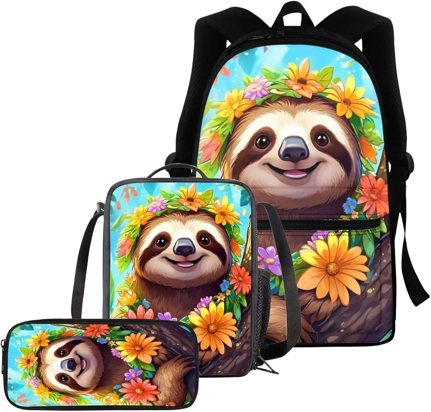- 3-teiliges Set: Rucksack, isolierte Lunchbox und Federmäppchen.
